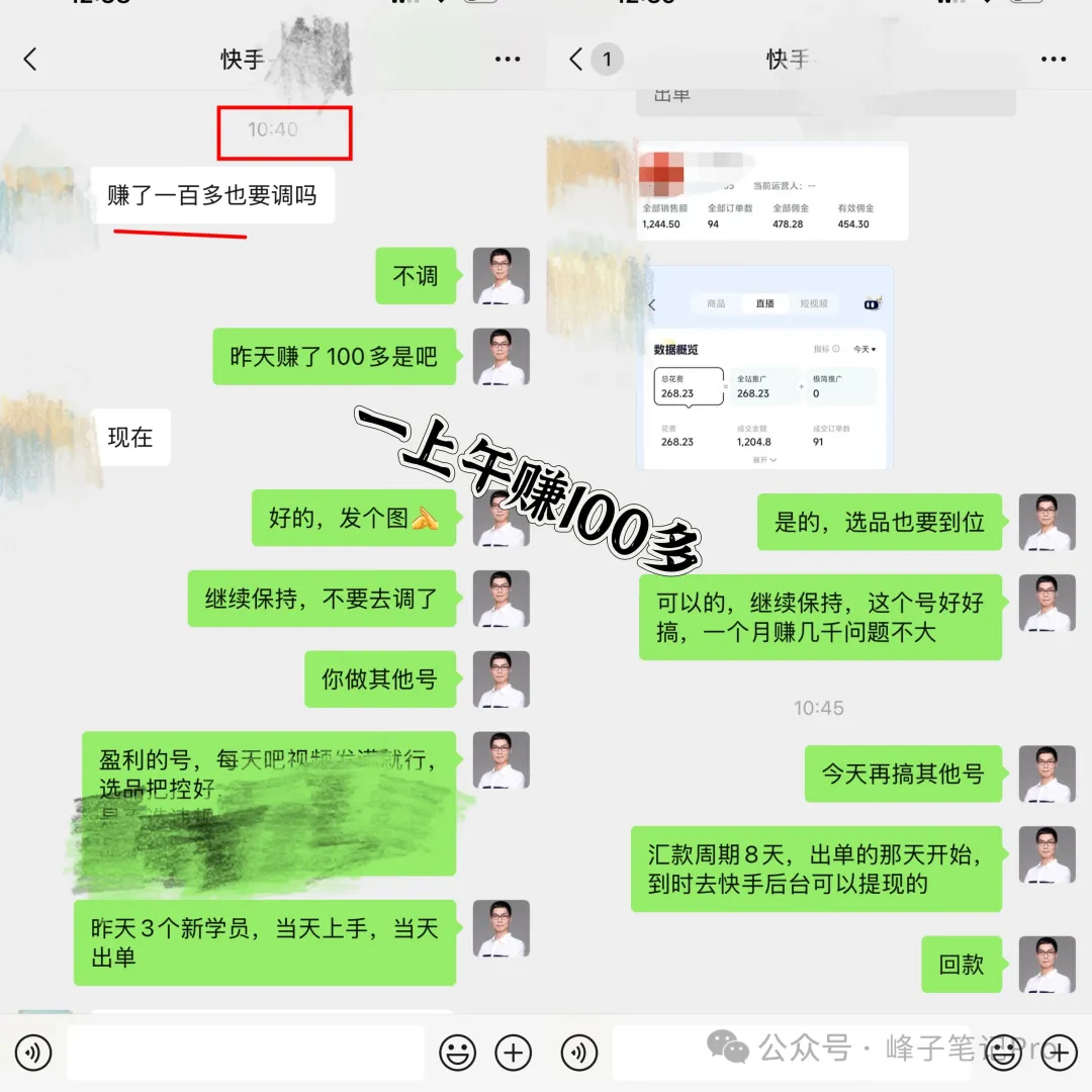 快手带货学员案例:最快1小时出单,搞钱速度好快!