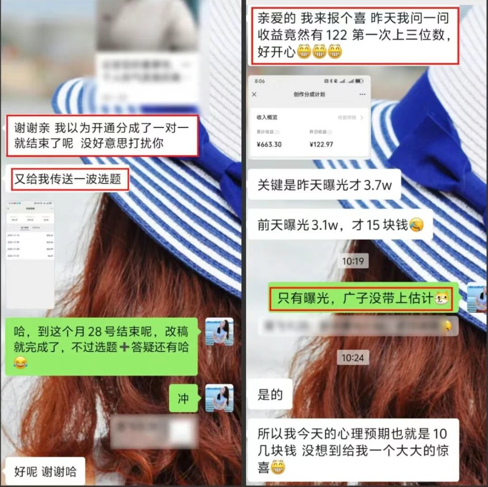 定位的模糊不清,到开始紧扣育儿、婚姻和职场赛道稳稳发力从经常找不到选题写,到每天有5—10个选题可以选从拿不准什么选题更火爆,到懂得用数据思维来选题从简介随便写,做不出人设,到优化好人设后,涨粉开始加快从点赞200的靠运气爆款,到有了阅读10W+ ,点赞2000的持续输出这些都是在私教训练营获得的改变,结课后,学员主动给朋友推荐我,这是对私教最好的认可。