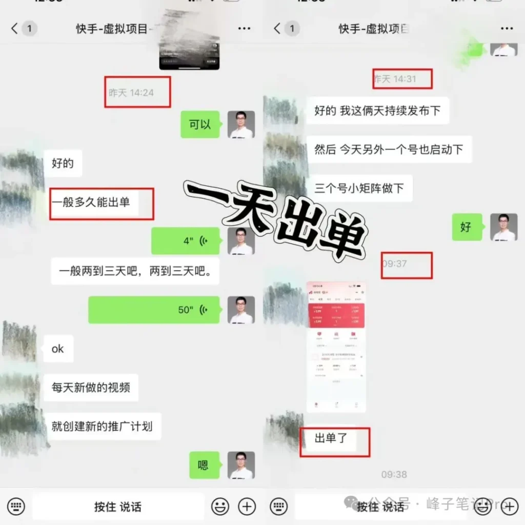 这个项目底层逻辑是通过无人直播投流,来曝光快手全站商品及发布的段短视频,用户下单了,就能挣到每单的佣金,这几天玩法不断在更新,也让好几位刚报名的学员都能很快拿到结果,最快的1小时内,最慢的1天内出单,这搞钱的速度嘎嘎的香!