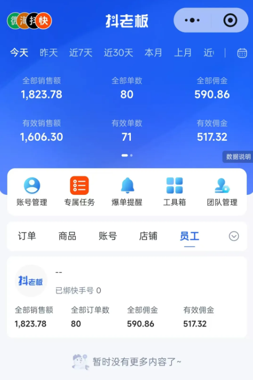 第二个号:一天消耗几块钱,也能出近80单,每单成本0.01,销售额2212.11,佣金约700多。(这个号做的时间比较久)