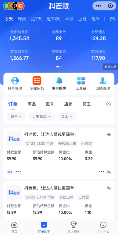 第一个号:一天消耗大约50,出了130多单,每单成本0.31元,销售额1656.63,佣金达到了300多。