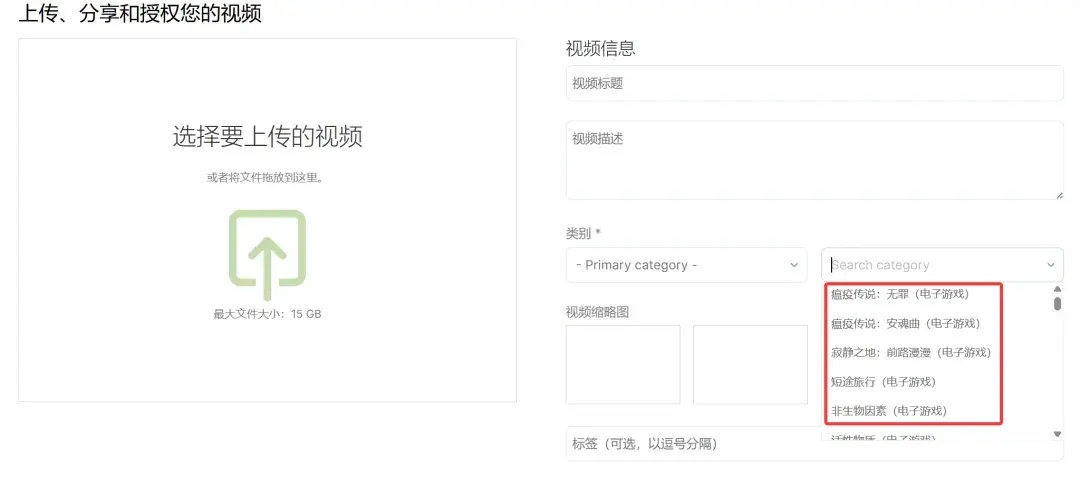 我分析过,视频选择的类目游戏可以传很多种,大家可以去尝试。