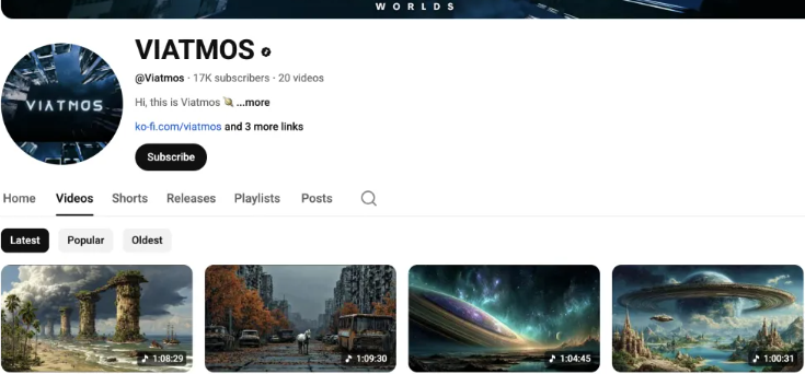你可能还不知道,ai音乐怎么赚钱,现在你们看这个YouTube视频,这个@VIATMOS,他是三个月前,开始进行ai music。