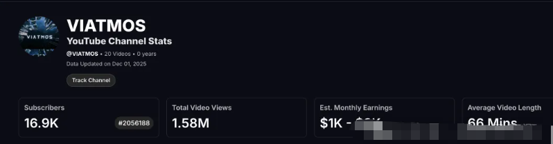 我用vidiq工具去分析这个频道,他一个的月收入目前是1k~3k美元,数据一直在持续增长。