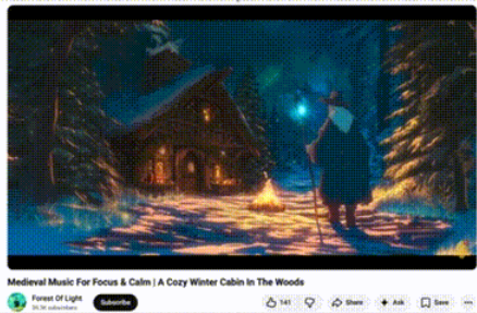 目前,在油管上,这种学习主题的低保真音乐非常受欢迎。 因为制作起来非常非常容易,音乐本身就非常重复。再说一遍,这种音乐完全没有视觉效果。 很多时候,它只是一张静态图片。 而这种音乐最棒的地方在于,这类视频通常都非常非常长。只是非常重复而已。你可以制作一段短小的曲目,让它一遍又一遍地重复,或者把几段曲目串联起来,让它们一遍又一遍地重复。人们会让它播放好几个小时,这意味着你可以在油管上快速积累数小时的观看时长。这就是你能快速赚钱的方式。