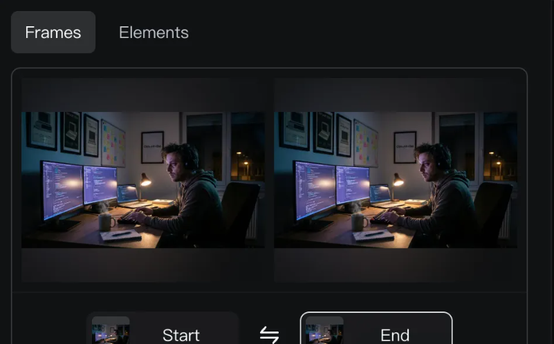 接下来,上传你的图片作为视频的第一帧。 然后,点击结束帧按钮, 上传同一张图片作为最后一帧。