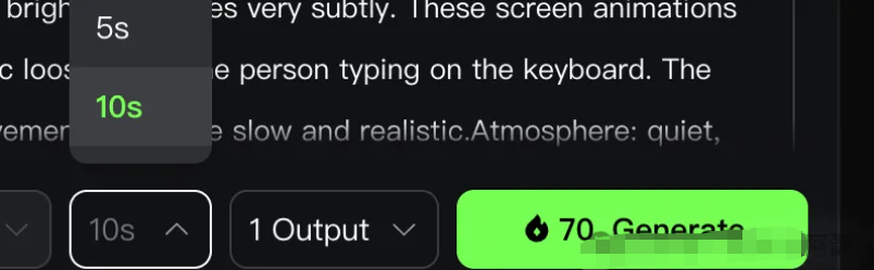 然后你可以选择动画的时长。如果你选择 10 秒,需要花费 70 点数。如果你选择 5 秒,只需花费 35 点数。所以,随你选择。